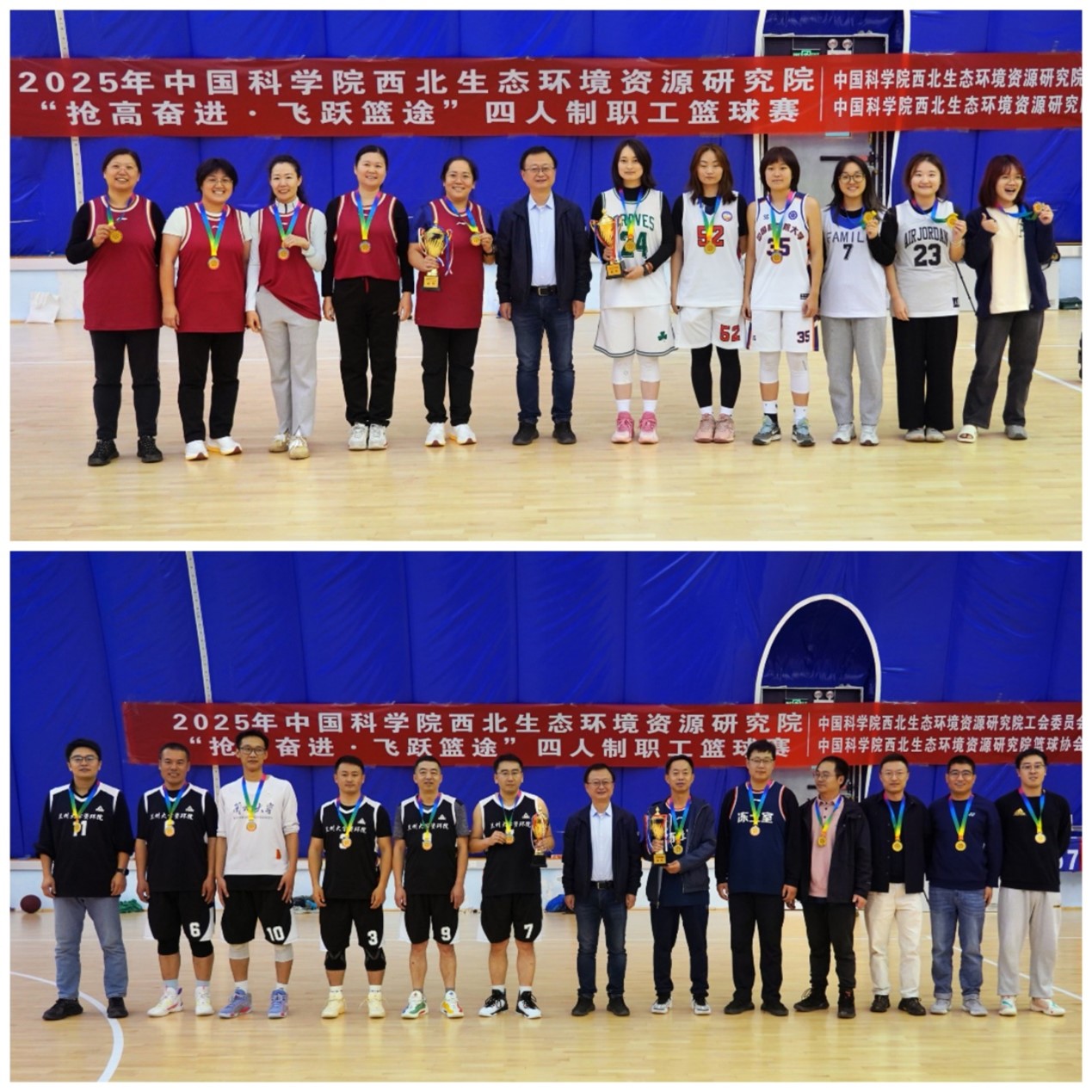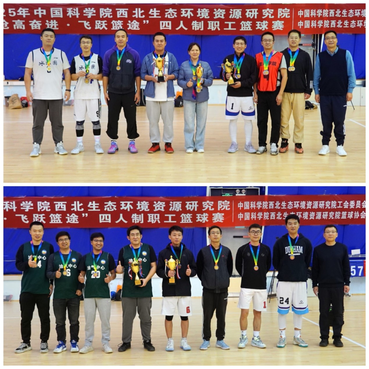 本次比賽以團體形式分為男子組和女子組進行,全體運動員秉持“安全、友誼、競技”的參賽理念,全身心投入比賽,奉獻了精彩紛呈的籃球盛宴。賽場上,隊員們默契配合,激烈拼搶,精準投籃,巧妙助攻,犀利的突破與嚴密的防守交替上演,多個精彩進球引發全場歡呼。經過緊張激烈的角逐,機關女隊、凍土室一隊榮獲冠軍,聯合女隊、冰凍圈代表隊榮獲亞軍,油氣中心代表隊榮獲季軍。邀請代表隊中,研究生女隊、蘭州大學資源環境代表隊榮獲冠軍,蘭州大學生態學院代表隊榮獲亞軍,研究生男隊榮獲季軍。