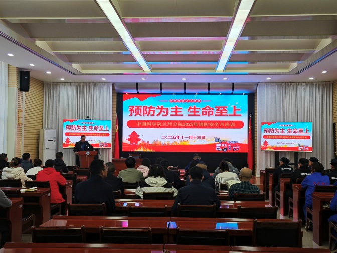 為普及消防知識,進一步增強廣大職工、研究生的消防安全意識和自救互救能力,提高單位及個人應對火災的綜合能力, 11月13日下午,中國科學院蘭州分院圍繞全國消防宣傳月“全民消防、生命至上——安全用火用電”活動主題, 組織開展了消防安全知識講座和應急演練活動。蘭州分院全體職工、研究生代表、園區物業、家屬區值班點保安等相關人員70余人參加。