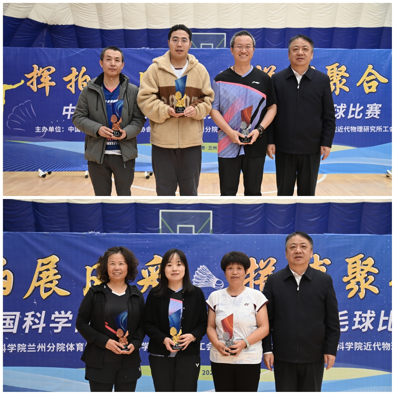 經過激烈比拼,蘭州化物所、近代物理所、西北研究院代表隊分別獲混合團體賽冠軍、亞軍和季軍;蘭州分院機關、青海鹽湖所和西北高原所代表隊分別獲優秀組織獎、團結拼搏獎和體育道德風尚獎。蘭州化物所文澤東、近代物理所封安輝和青海鹽湖所王懷有分別獲男子單打冠軍、亞軍和季軍;近代物理所吳曉霞、蘭州化物所楊恩芳和西北高原所陳曉澄分別獲女子單打冠軍、亞軍和季軍。