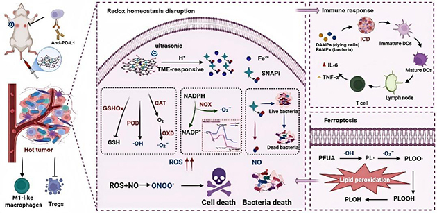 相關研究成果以“Axially Polarized O-Fe-N4 Single-Atom Enzyme Drives Clearance of Tumor-Resident Intracellular Microbiota and Potentiates Immunotherapy”為題發表在ACS Nano(2026, 20, 8704-8725)上,蘭州化物所景泉博士為論文第一作者,蘭州化物所海軍研究員、邸多隆研究員和蘭州大學汪寶堆教授、新疆大學范仲雄教授為論文共同通訊作者,蘭州化物所為第一完成單位。