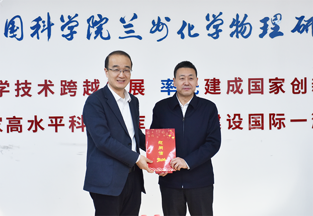 2月5日上午,甘肅省委常委、副省長雷思維到中國科學院蘭州化學物理研究所慰問蘭州化物所所長、黨委副書記周峰研究員。
