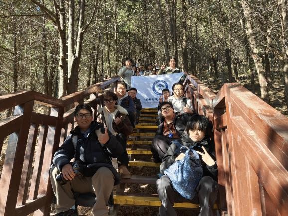 隊(duì)伍沿雁棲湖校區(qū)出發(fā),穿林越階,在陡坡與棧道交錯(cuò)間競速前行。觀景臺極目遠(yuǎn)眺,京北山色盡收眼底。一路上,陡坡棧道考驗(yàn)?zāi)土Γ屙斶h(yuǎn)眺開闊胸懷,梵音鐘鼓沉淀初心。大家相互攙扶、彼此等待,用腳步丈量自然,用笑聲縮短跨學(xué)科的距離。高強(qiáng)度的徒步為新“鹽湖人”注入了堅(jiān)毅、協(xié)作、沉靜的集體底色。在這片自然與人文交融的天地間,大家紛紛暢談科研志向,分享求學(xué)初心。“登高”不僅是為了望遠(yuǎn),更是為了“明志”——在高處審視自我,在廣闊中確立方向。有同學(xué)感慨:“科研之路正如登山,不在于一蹴而就,而在于持之以恒的積累與攀登。”